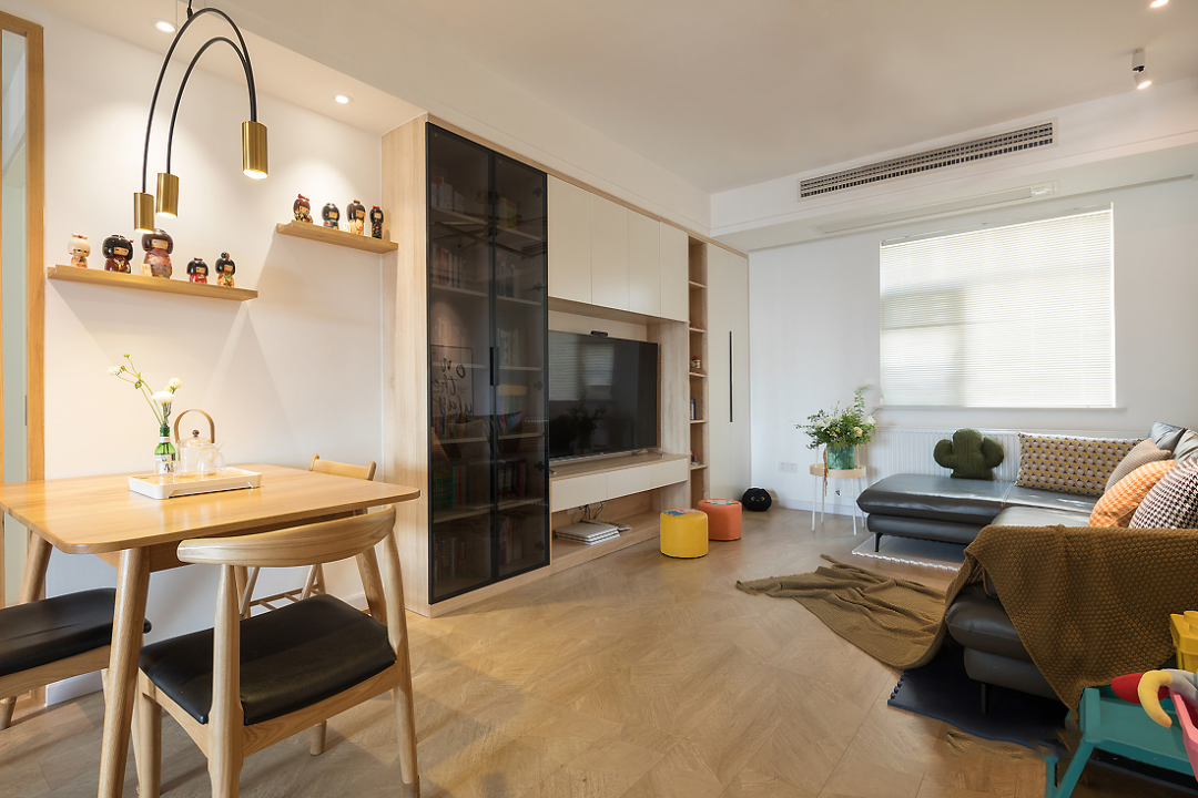 2021年7月27日-【文山创艺装饰cy1997】这套106平米的北欧风格装修案例,不求绚烂的造型与材质的奢华,回归简约舒适,一切来得贴切自然。 客餐厅一体式的设计,能够最大化的利用现有空间,将两个不同功能性的空间有效结合。原木的装饰简约而不失自然温润感。